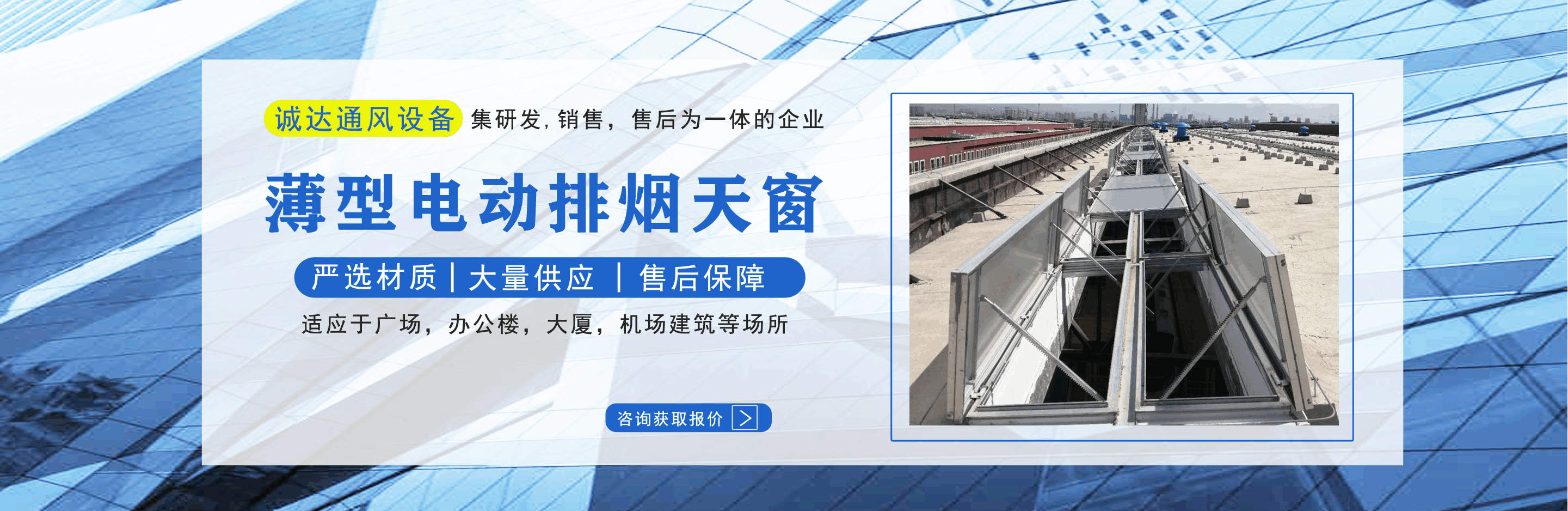 山東誠(chéng)達(dá)通風(fēng)設(shè)備有限公司主營(yíng)排煙天窗,電動(dòng)排煙天窗,消防天窗,一字型消防電動(dòng)排煙天窗,薄型電動(dòng)排煙天窗等產(chǎn)品,質(zhì)量可靠,歡迎前來(lái)咨詢訂購(gòu)!  公司憑借雄厚的實(shí)力,豐富齊全的規(guī)格品種,完善的質(zhì)量保證,合理的價(jià)格,優(yōu)質(zhì)的服務(wù),不斷地受到新老用戶及業(yè)內(nèi)人士的肯定和信任,我們本著及用戶之所及,想用戶之所想的服務(wù)宗旨不斷地拼搏,進(jìn)取!  公司真誠(chéng)的歡迎社會(huì)各界朋友蒞臨本公司參觀考察,同時(shí)也非常感謝所有新老客戶的信賴和支持。...